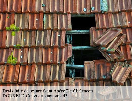 Devis gratuitIl est inévitable de faire appel à un couvreur expérimenté pour détecter les fuites de toiture. Si vous êtes dans l'obligation de solliciter les services d'un professionnel, il est recommandé de vous adresser au couvreur DORKELD Couvreur zinguerie 43. Il utilisera des moyens techniques modernes pour identifier les causes actuelles et les sources potentielles de fuite dans votre toiture. Ensuite, il proposera des solutions pérennes pour rendre à nouveau étanche votre toiture. Demandez-lui un devis si vous êtes à Saint Andre De Chalencon, dans le 43130.